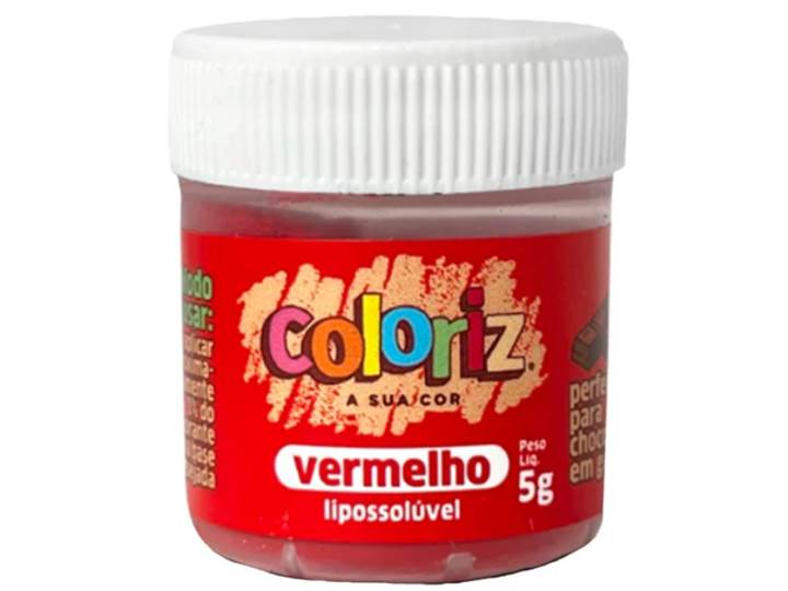 CORANTE EM PO HIDROSSOLUVEL PARA CHOCOLATE VERMELHO 5G COLORIZ