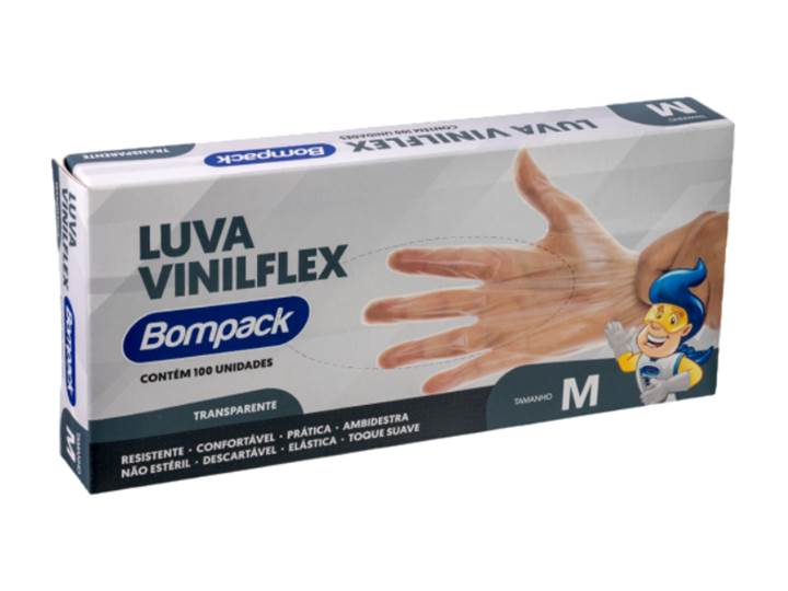 LUVA VINILFLEX SEM PÓ TRANSPARENTE M BOMPACK